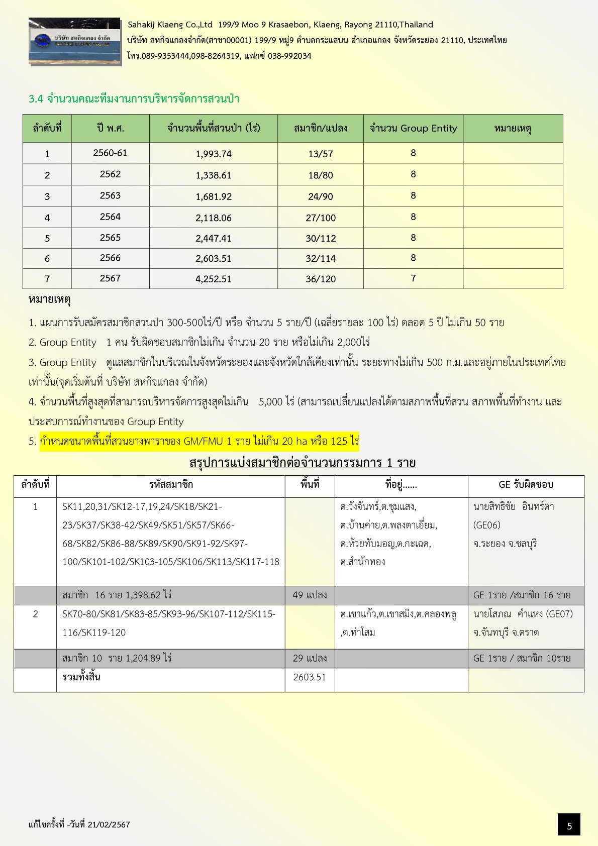 • แผนการทำไม้ยางพาราและการผลิตยางก้อนถ้วย 5 ปี