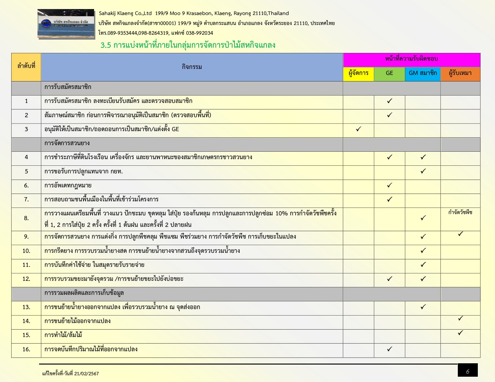 • แผนการทำไม้ยางพาราและการผลิตยางก้อนถ้วย 1 ปี